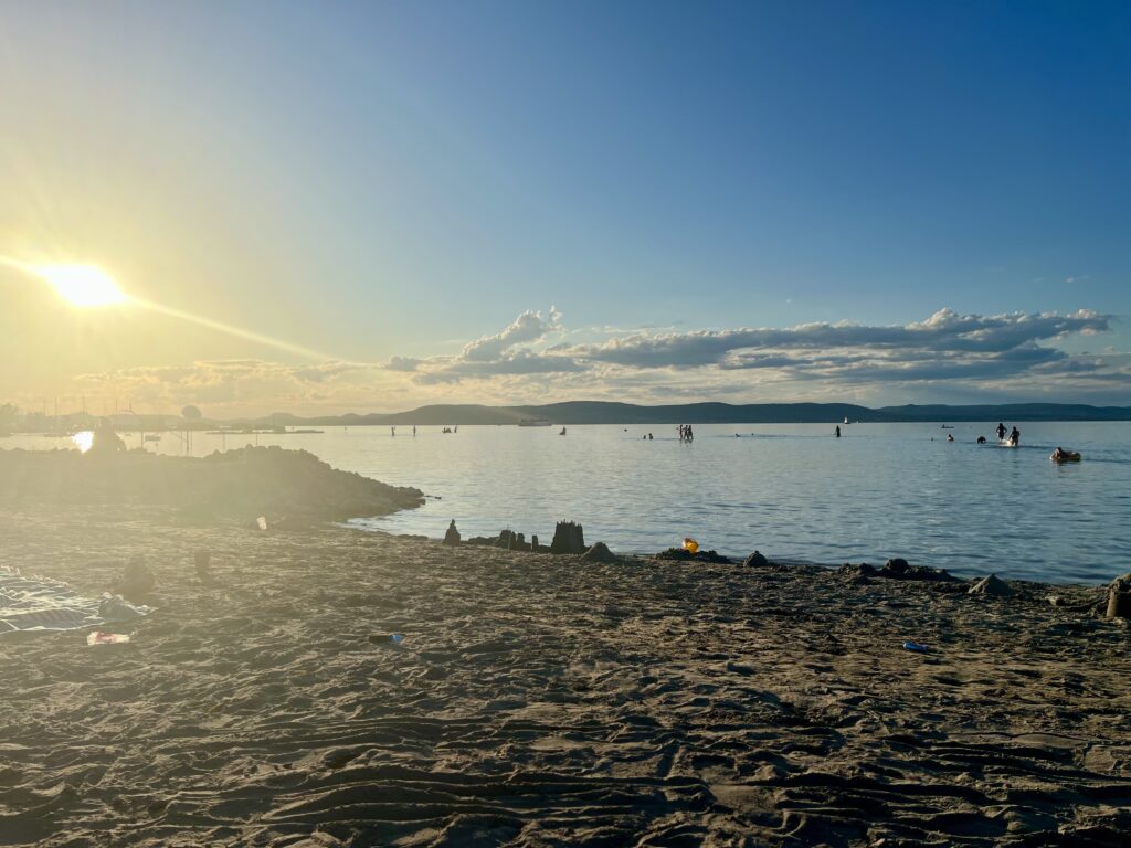 Ezt a strandot azért kedveltük meg, mert nagy a homokos partszakasza, ahol élvezik a gyerekek a homokozást. A strandnak vannak élménymedencéi is, nemcsak kisgyerekeknek, a nagyobb gyerekeknek pedig több csúszda is található itt. Igazi tengerparti hangulatú a strand, hiszen puha homok van, sekély és lassan mélyülő vízben fürdőzhetünk. Játszótereket is találunk, többet is, ami nem kifejezetten kúszó-mászó babáknak van, de azért lehet válogatni a játékeszközök között. Továbbá baba-mama szolgáltatásokkal és vízi kalandparkkal is rendelkezik a fürdőhely.